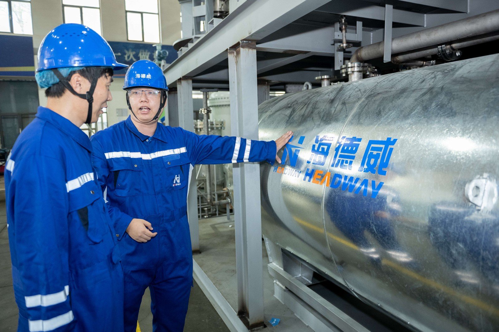 海洋衛(wèi)士?船載碳捕集系統(tǒng)依托海德威自主設(shè)計(jì)的高速離心脫碳技術(shù)和高性能吸收劑,以高速旋轉(zhuǎn)形成的離心力場(chǎng)替代傳統(tǒng)重力場(chǎng),顯著提升了氣液兩相傳質(zhì)效率,系統(tǒng)脫碳效率超過(guò)90%,二氧化碳捕集純度可達(dá)99.6%以上,具有脫碳效率高、體積小、能耗低、安裝及儲(chǔ)運(yùn)便捷等優(yōu)勢(shì)。