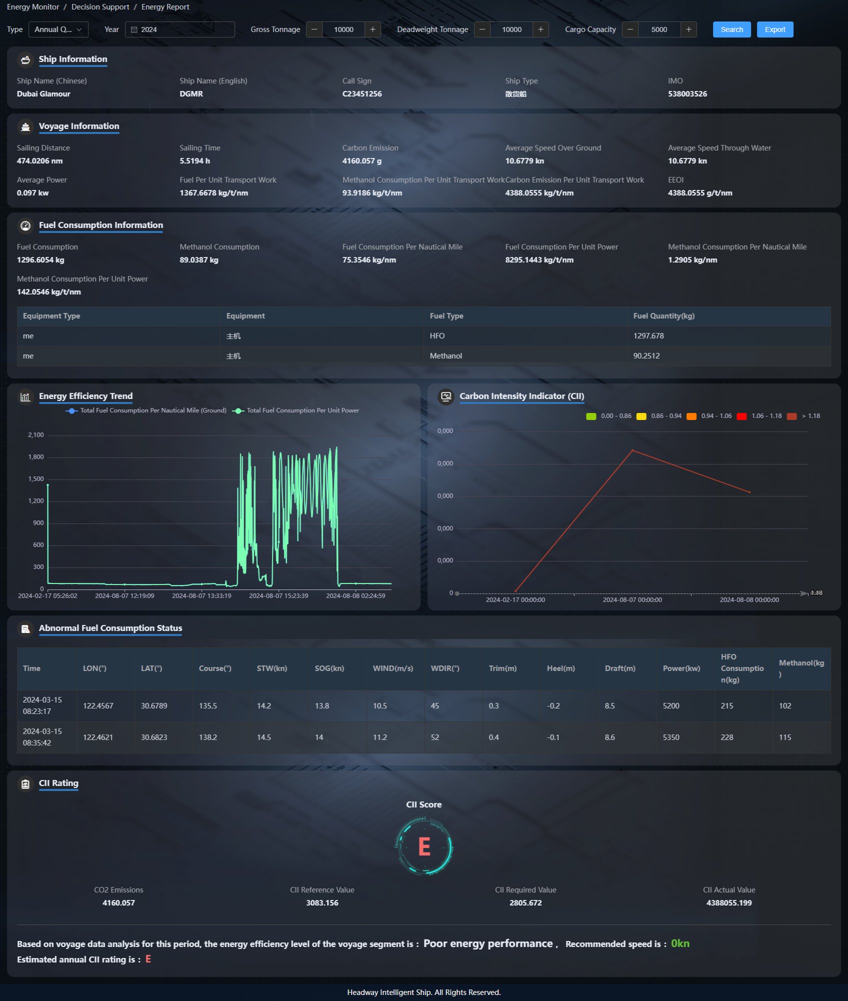 基于智能信息集成平臺,實(shí)時監(jiān)測船舶航行各個關(guān)鍵指標(biāo),運(yùn)用現(xiàn)代化船舶能效管理的系統(tǒng)性方法,對船舶能源消耗、能源利用效率和二氧化碳排放進(jìn)行嚴(yán)格的控制和管理,提高船舶能效,減少設(shè)備自身或人為因素造成的額外消耗,實(shí)現(xiàn)船舶節(jié)能減排的能效要求,推動航運(yùn)綠色發(fā)展。